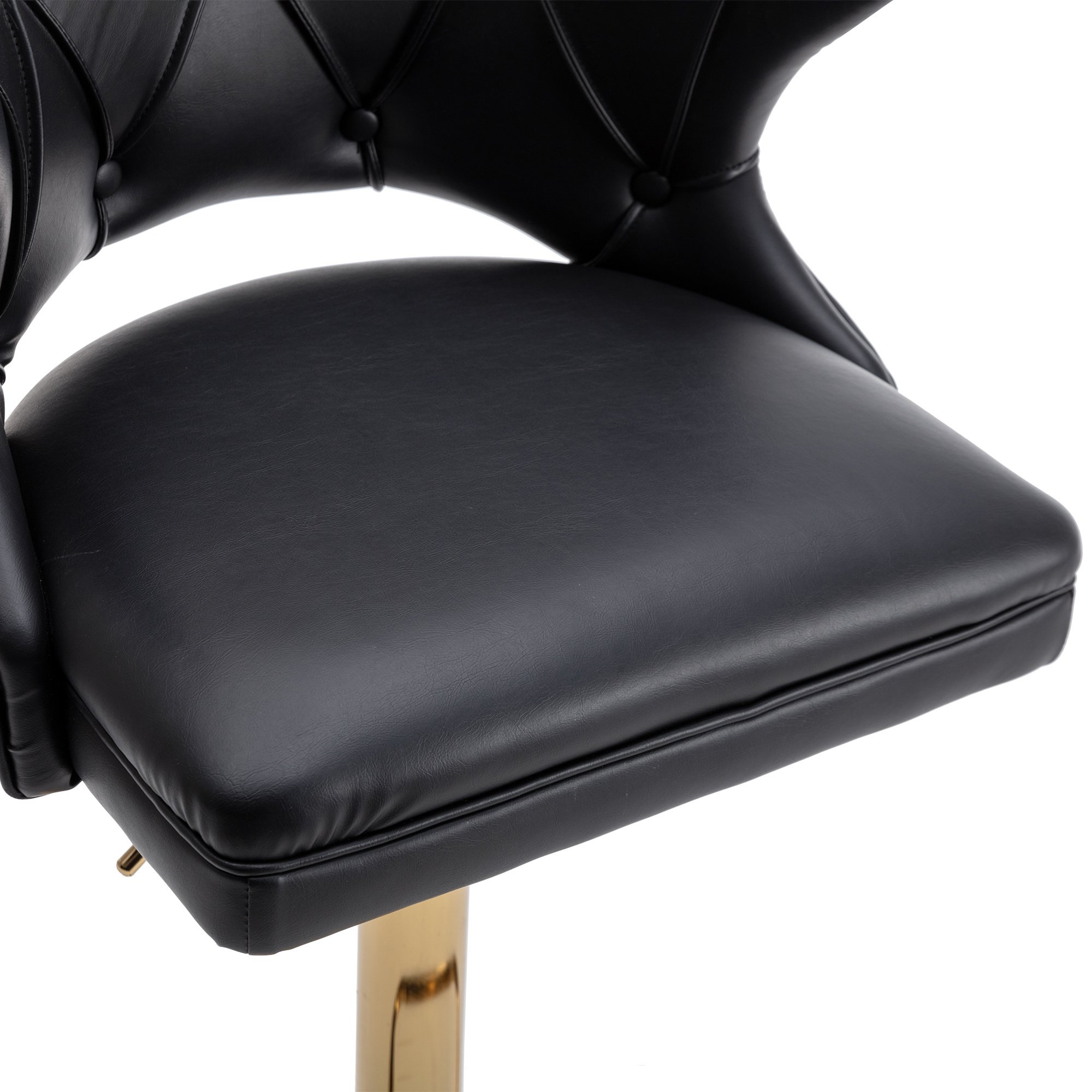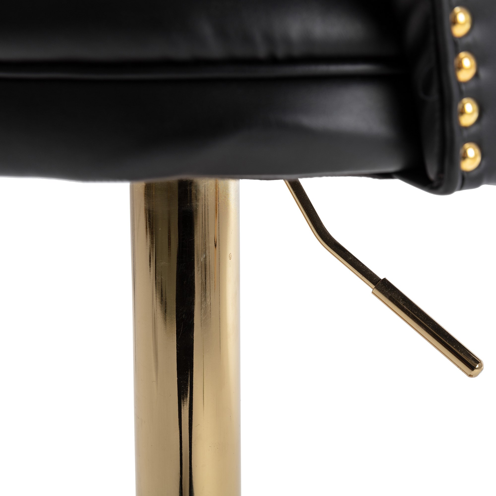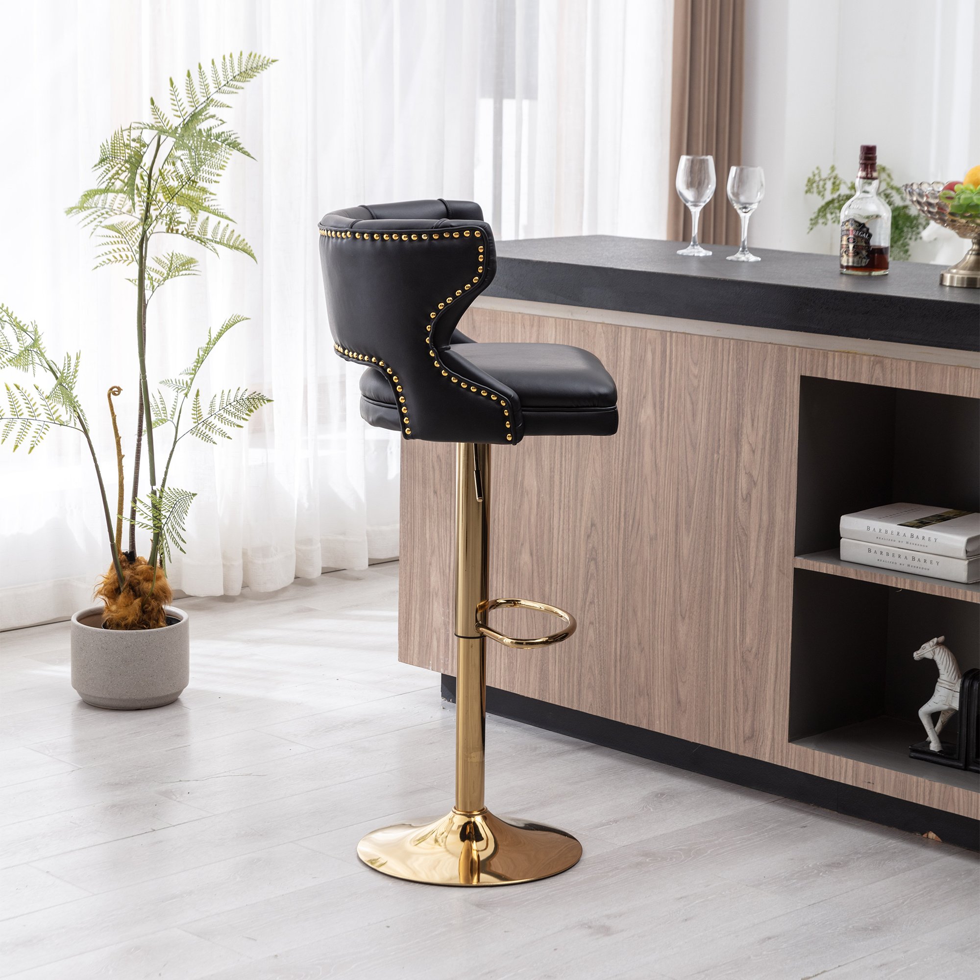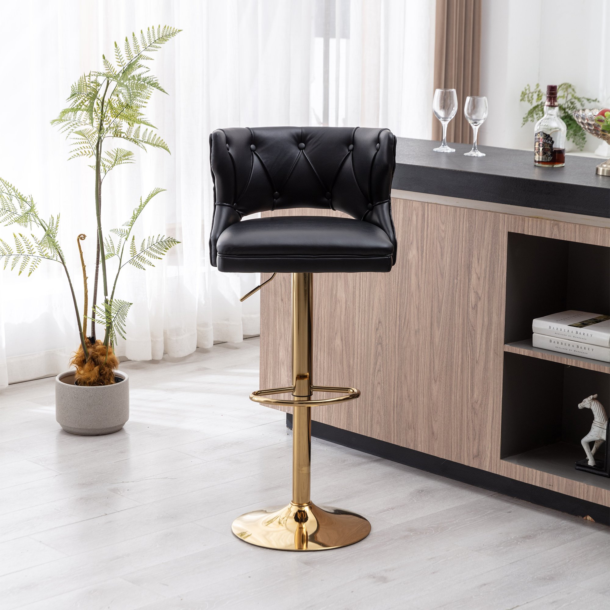 This counter stool brings flexibility and a luxe feel to your kitchen.Its frame is made from steel with a gold chrome finish, and it stands on a pedestal-style base with a built-in footrest bar.The seat is filled with foam for extra support.Diamond-tufting and nailhead trim add tailored touches, complementing your backrest surrounding glam decor.It have three seat cover materials--velvet/Faux Leather/Boucle.This stool's seat height ranges from 26" to 35",The gas lift is smooth and durable and it swivels 360°,allowing you to turn easily from one conversation to the next.