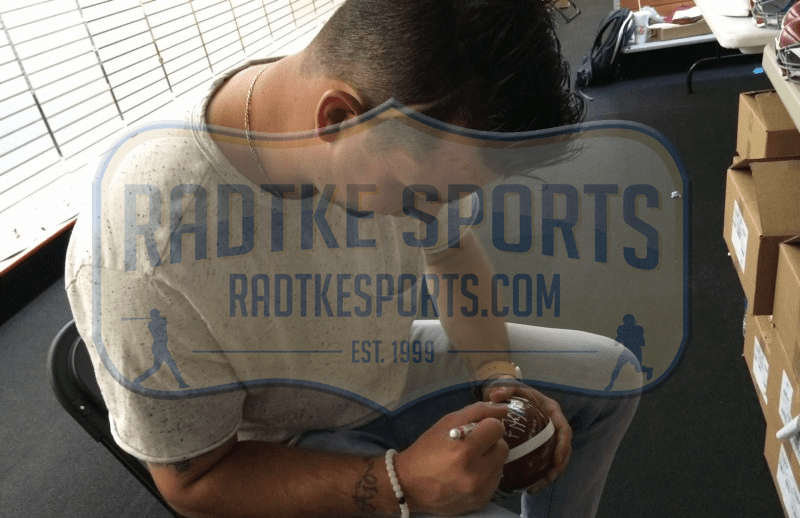 An Alabama Crimson Tide Schutt Mini Helmet hand signed by AJ McCarron. The item and signature are in excellent condition. In addition to signing his name, AJ also inscribed We Own Alabama on the item - AJ set the SEC on fire at Alabama and now looks to make his mark on the NFL. Radtke Sports is the exclusive autograph company for AJ. Look for the Radtke Sports AJ McCarron hologram on your memorabilia to ensure authenticity! - AUTHENTICATION: The item is accompanied by a Radtke Sports AJ McCarron Certificate of Authenticity - Radtke Sports AJ McCarron Serial Numbered and Databased Hologram - Picture of AJ from the Signings - *** Radtke Sports uses professional lighting for our product images that may show reflections. We also feature watermarks on our proof pictures. The picture you receive will NOT have a watermark***