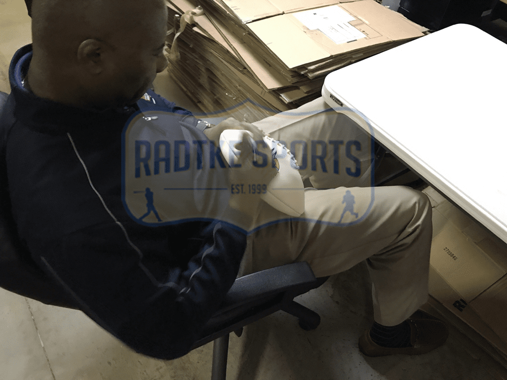 A Minnesota Vikings Embroidered NFL Football hand signed by Chris Doleman. The item and signature are in excellent condition. In addition to signing his name, Chris inscribed "HOF 12" on the item. Chris is an 8x Pro Bowler, 3x First Team All Pro, member of the NFL 1990's All-Decade Team and Minnesota Vikings Ring of Honor AUTHENTICATION: The item is accompanied by a Radtke Sports Certificate of Authenticity - Radtke Sports Serial Numbered & Databased Hologram - Photo of Chris from the Signing - *** Radtke Sports uses professional lighting for our product images that may show reflections. We also feature watermarks on our proof pictures. The picture you receive will NOT have a watermark***